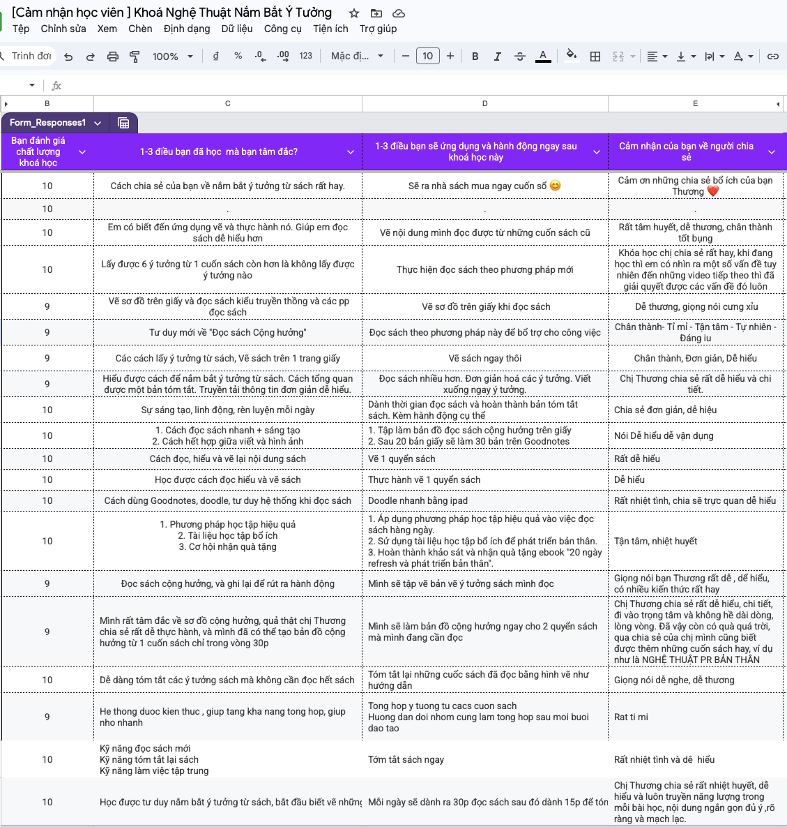 Cám ơn c T về khoá học nắm bắt ý tưởng từ sách rất dễ học và thực hành ạ