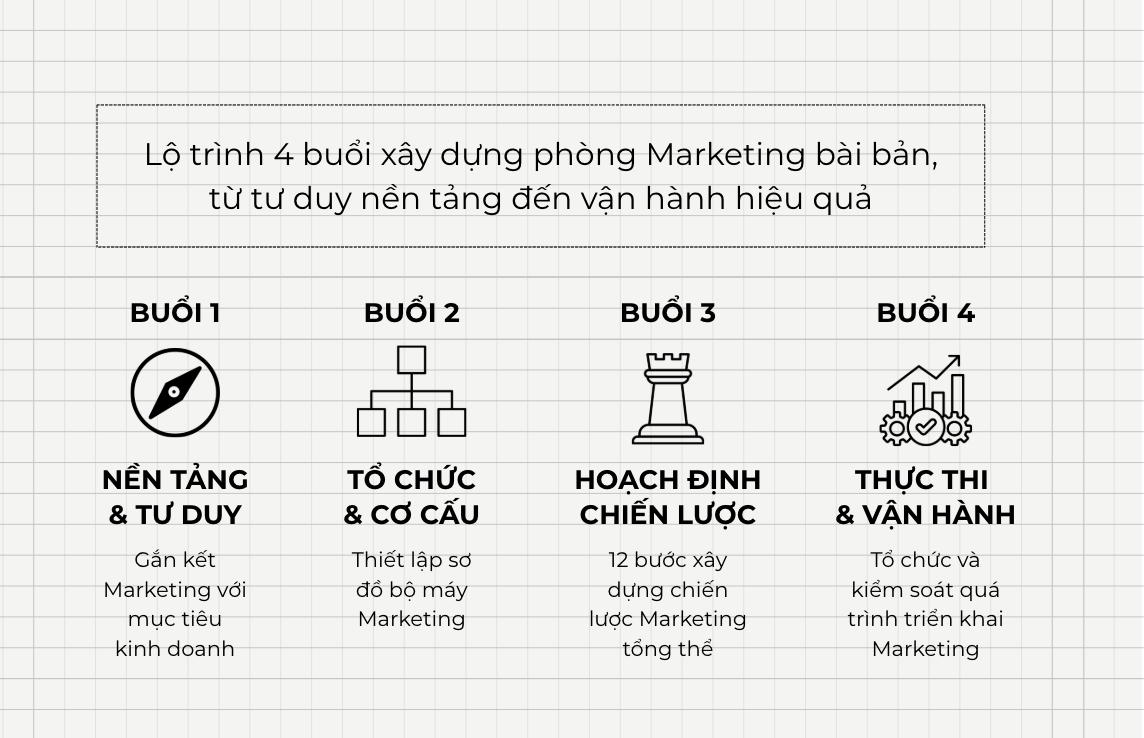 – Thiết kế các quy trình làm việc cốt lõi để đảm bảo sự phối hợp hiệu quả giữa Marketing và các phòng ban liên quan.